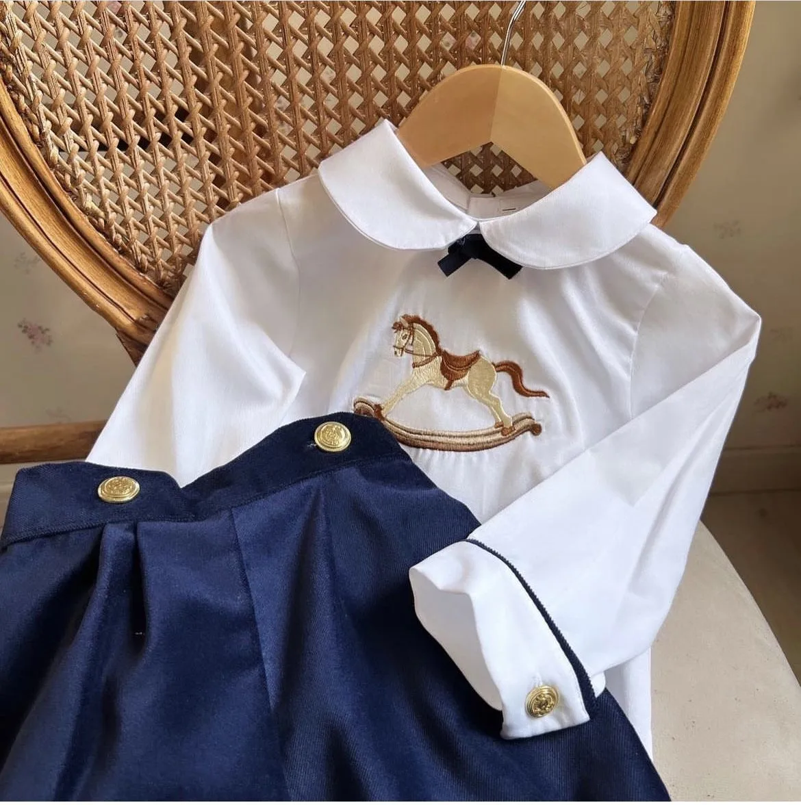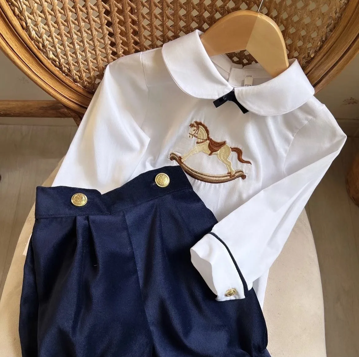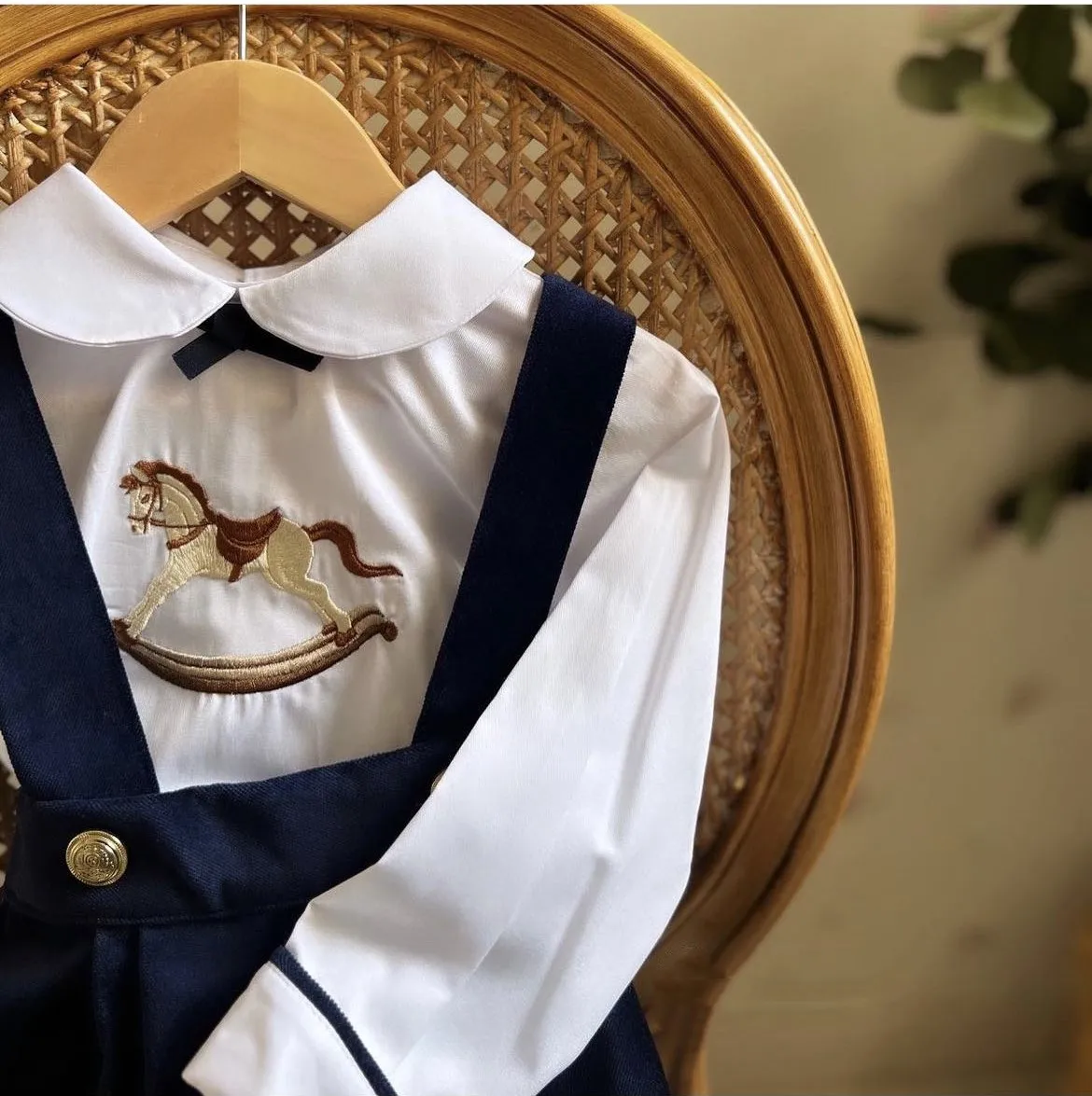 0-6Y Baby Boy Autumn Navy Blue Velvet Horse