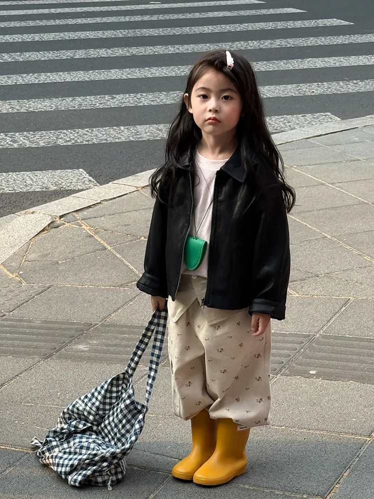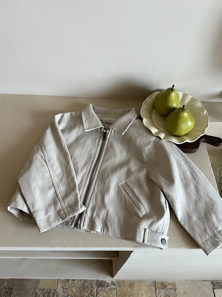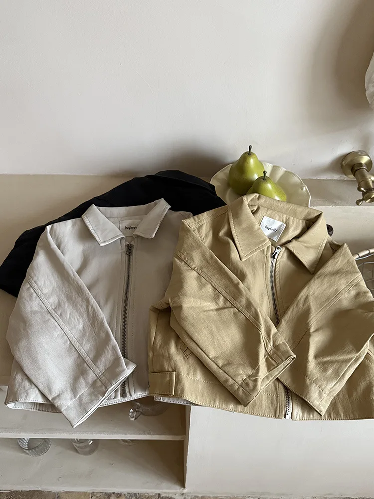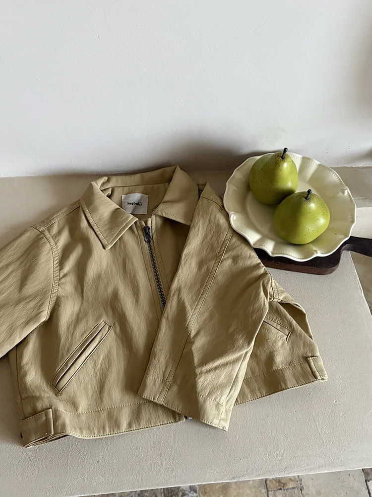 2025 Autumn New Children Long Sleeve Pu Leather Coat Fashion Girls Leather Jacket Solid Boys Lapel Zipper Jacket Kids Clothes