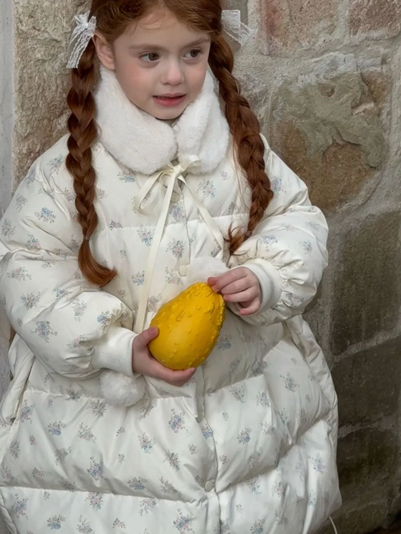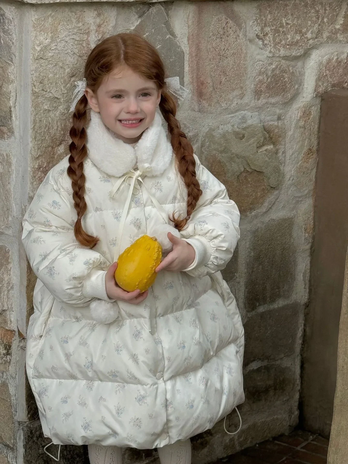 2025 Winter New Down Coat Korean Fashion Princess Floral Print Warm Cotton-padded Outerwear Kids Casual Sweetheart Parkas