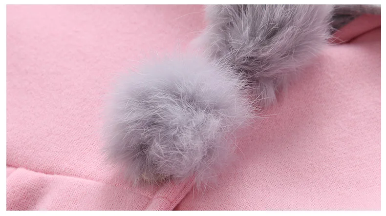 2025Children's coat Autumn Winter New Girl David Jacket Long Solid color Cute Cartoon Rabbit Ears Hooded Coat 0-5Y