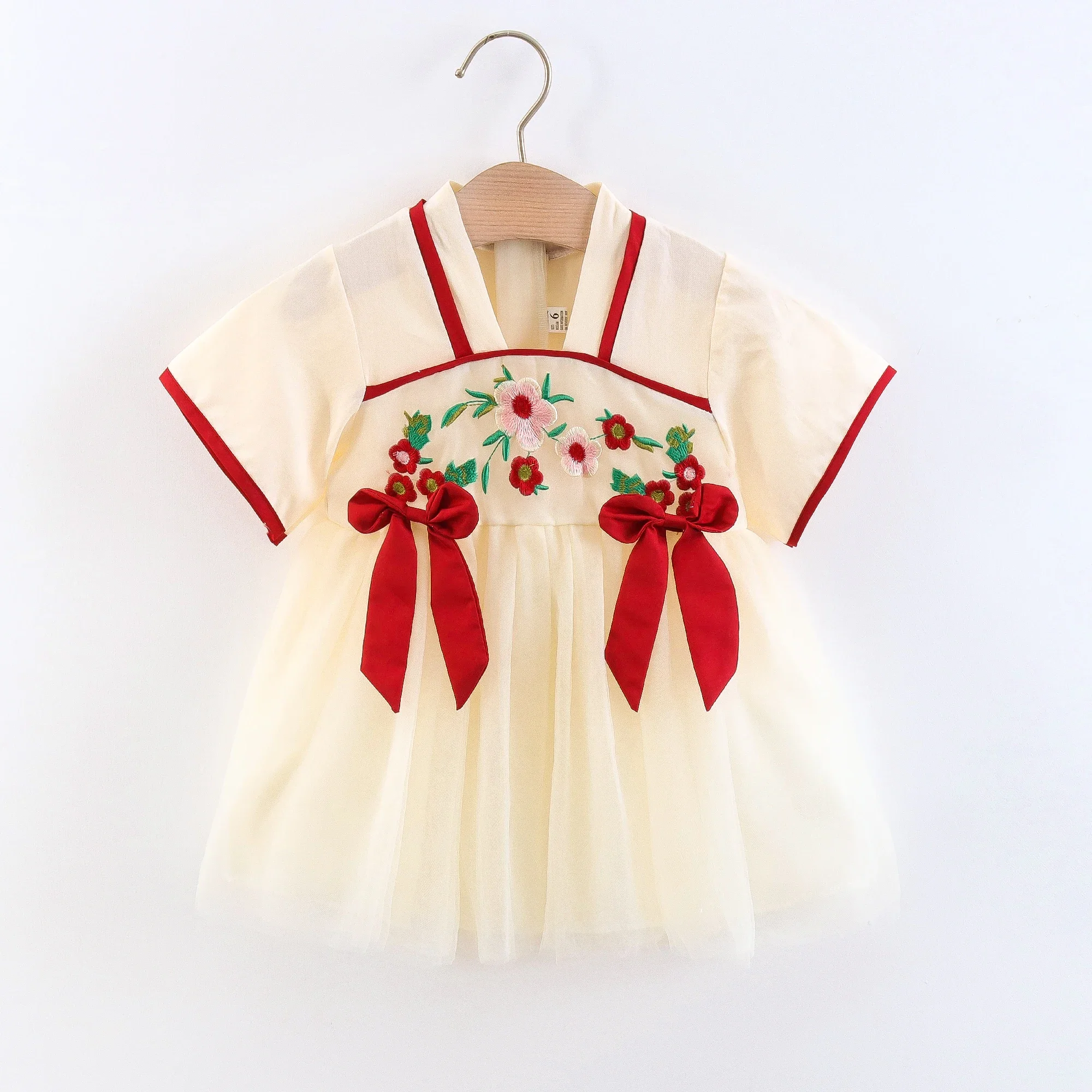 Children's Clothing Girl's Dress Summer New Cute Small Bow Flower Embroidery Improved Version Hanfu Ru Skirt