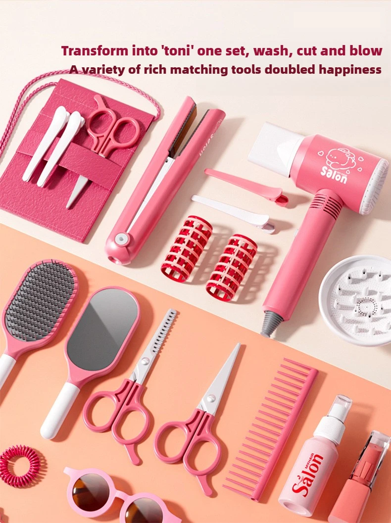 Girls Beauty Salon Set pretend play Hairdresser Toy Hair Cutting Kit With Hair Dryer Scissor Apron And Stylin Accessories
