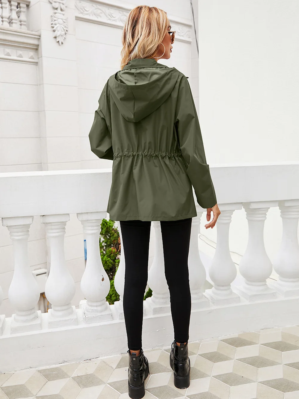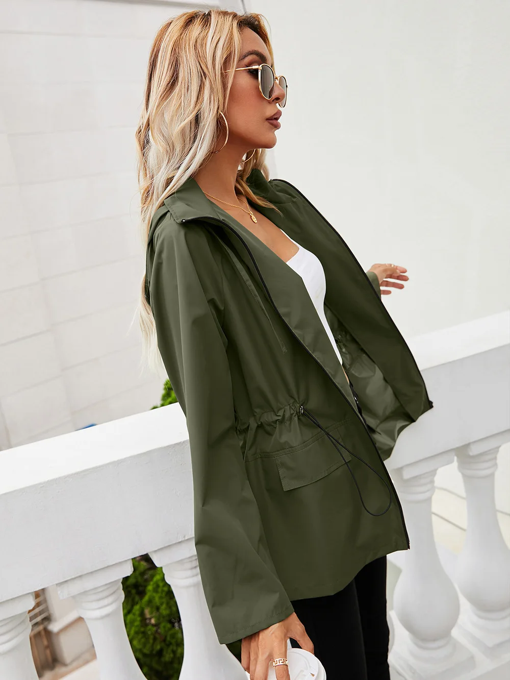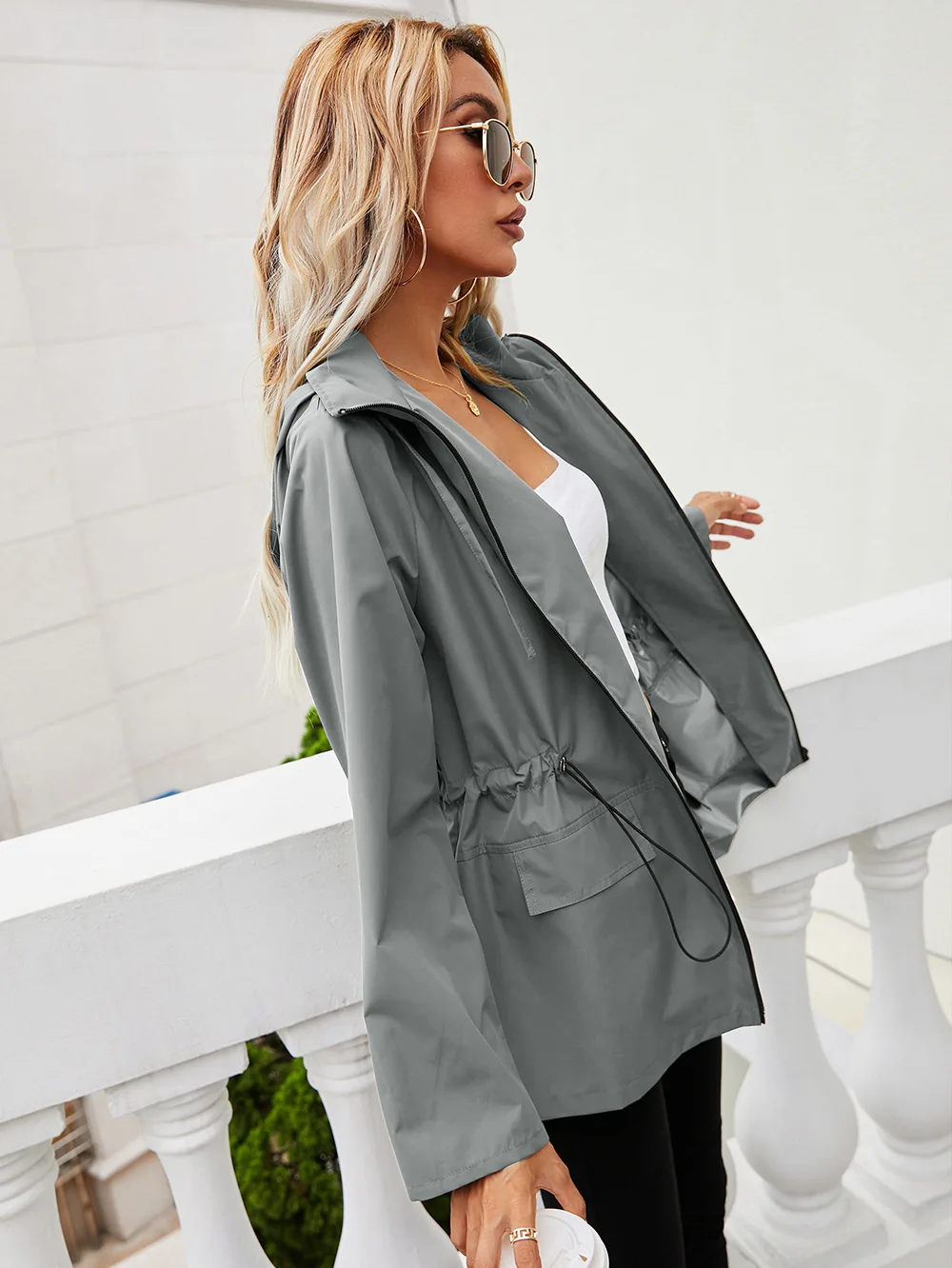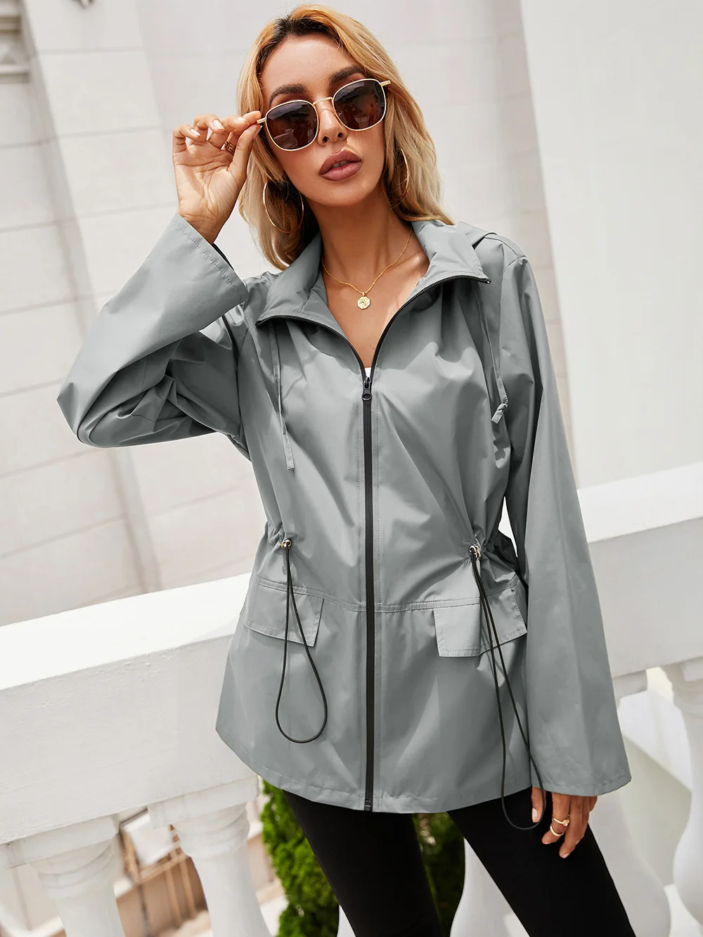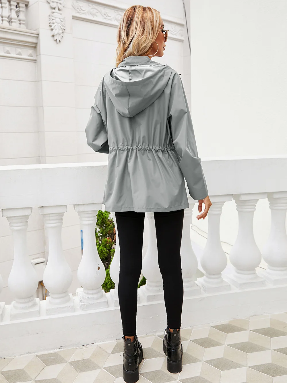Hooded Zipper Waist Waterproof Raincoat Outdoor Sports Mountaineering Coat Women
