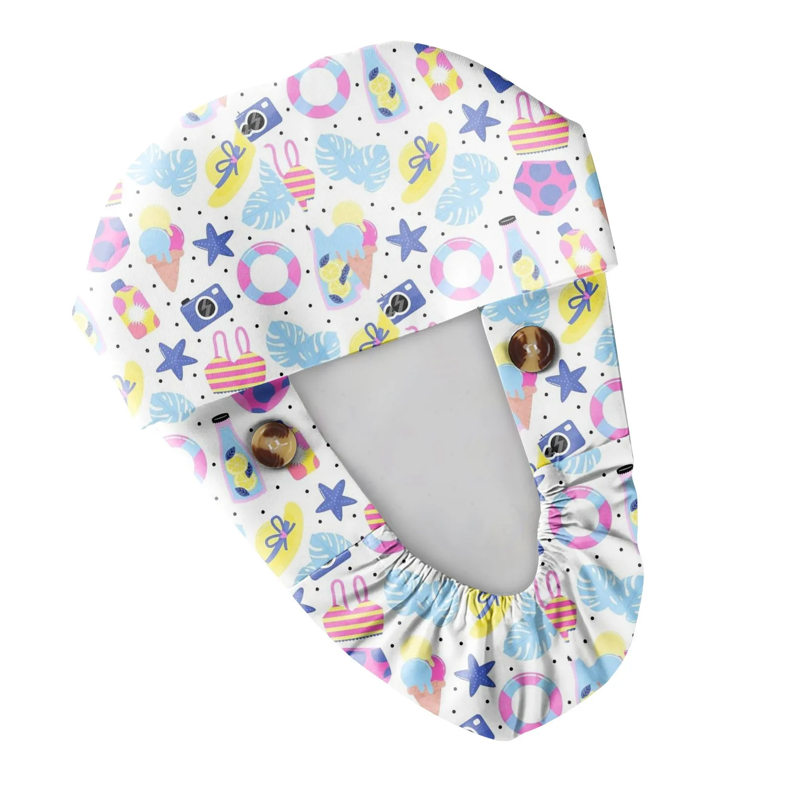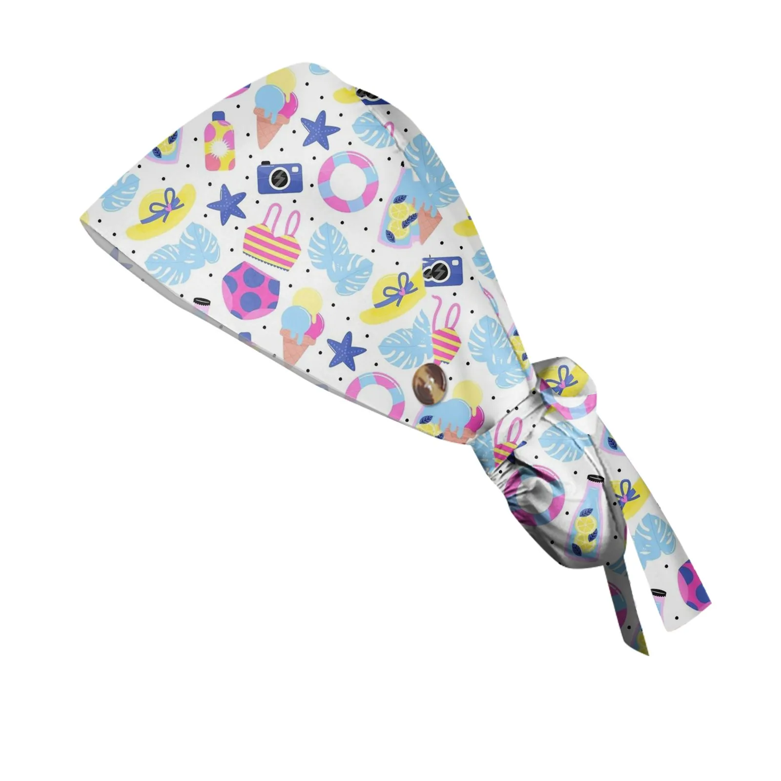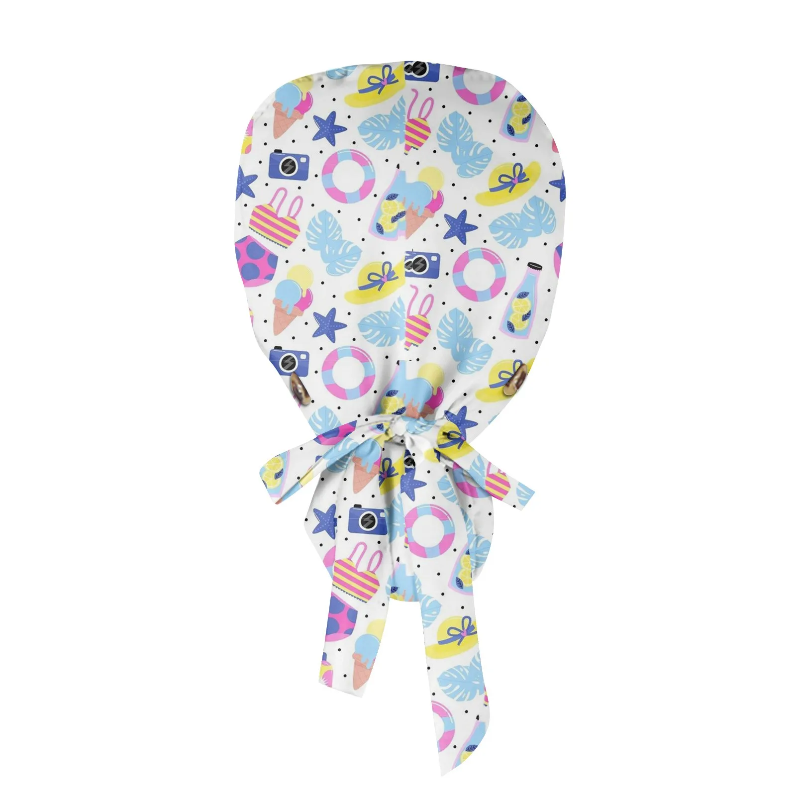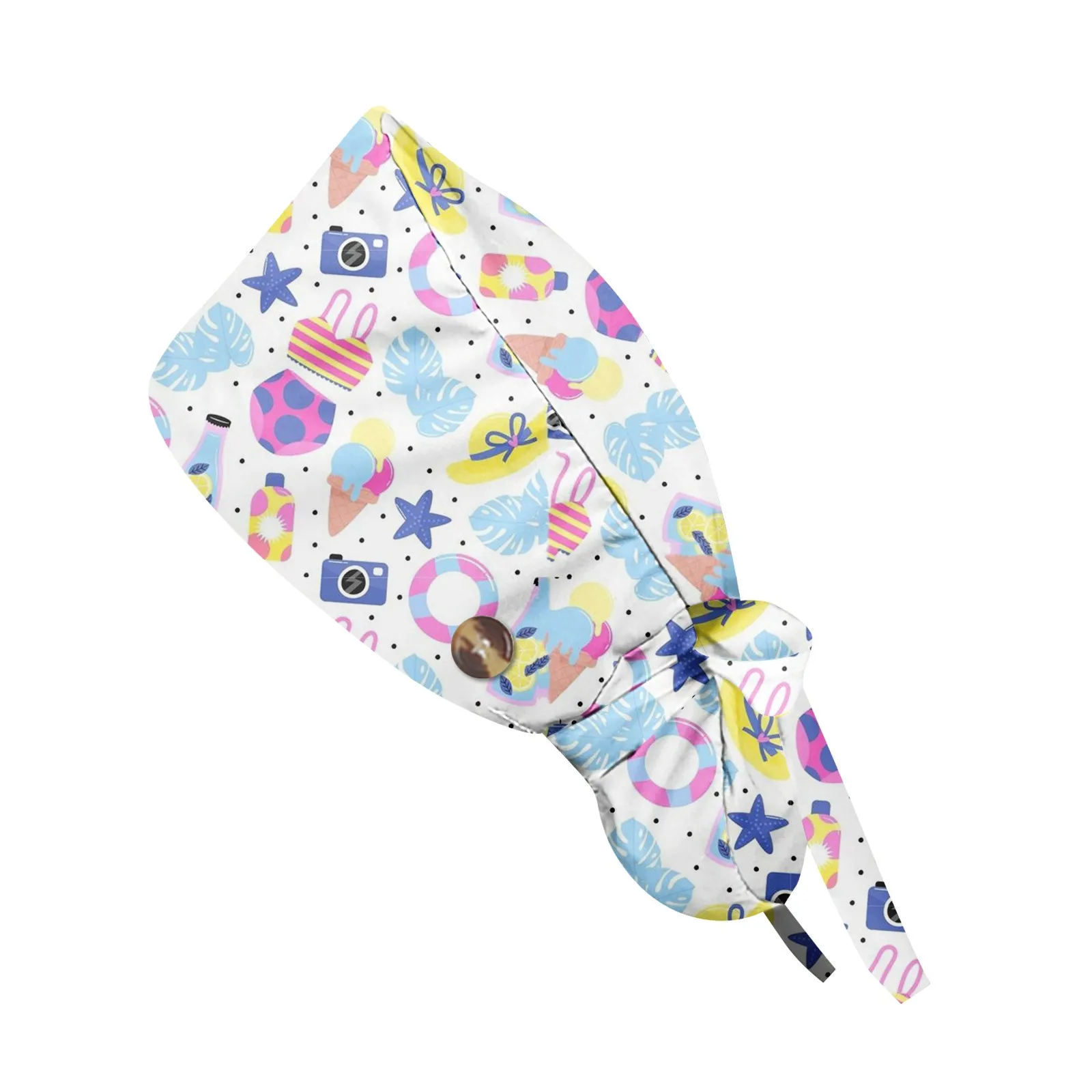 Long Hair Work Hat Fashion Cartoon Print Adjustable Work Cap Beauty Salon Nursing Cap Female Surgical Hat Scrub Caps Acces