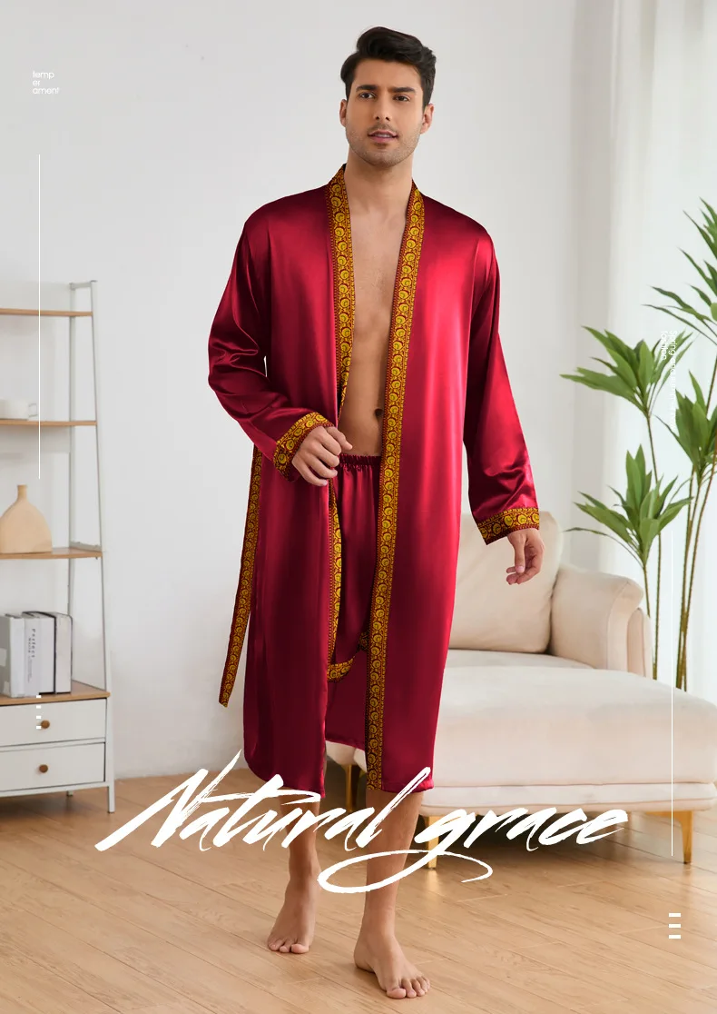 Men Long Robe Pajamas Set Baroque Style Kimono Bathrobe Gown Spring Summer Male Sleepwear Home Clothing Rayon Loungewear Pijamas
