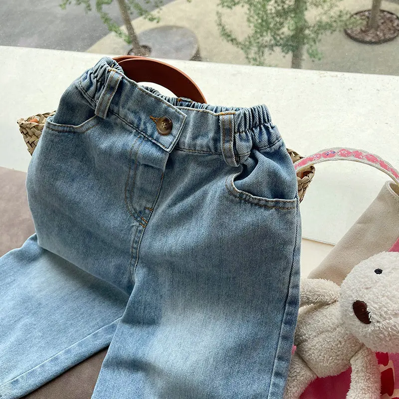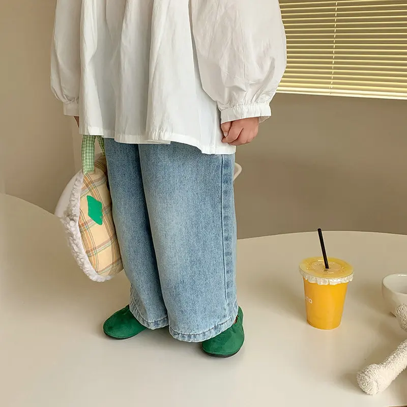 New Kids Jeans 2-6 Years Childrens Loose Wide Leg Pants Girls Simple Solid Color Trousers Fashion Jeans