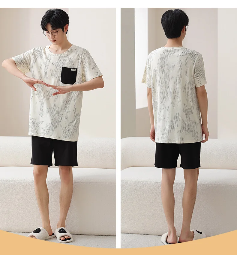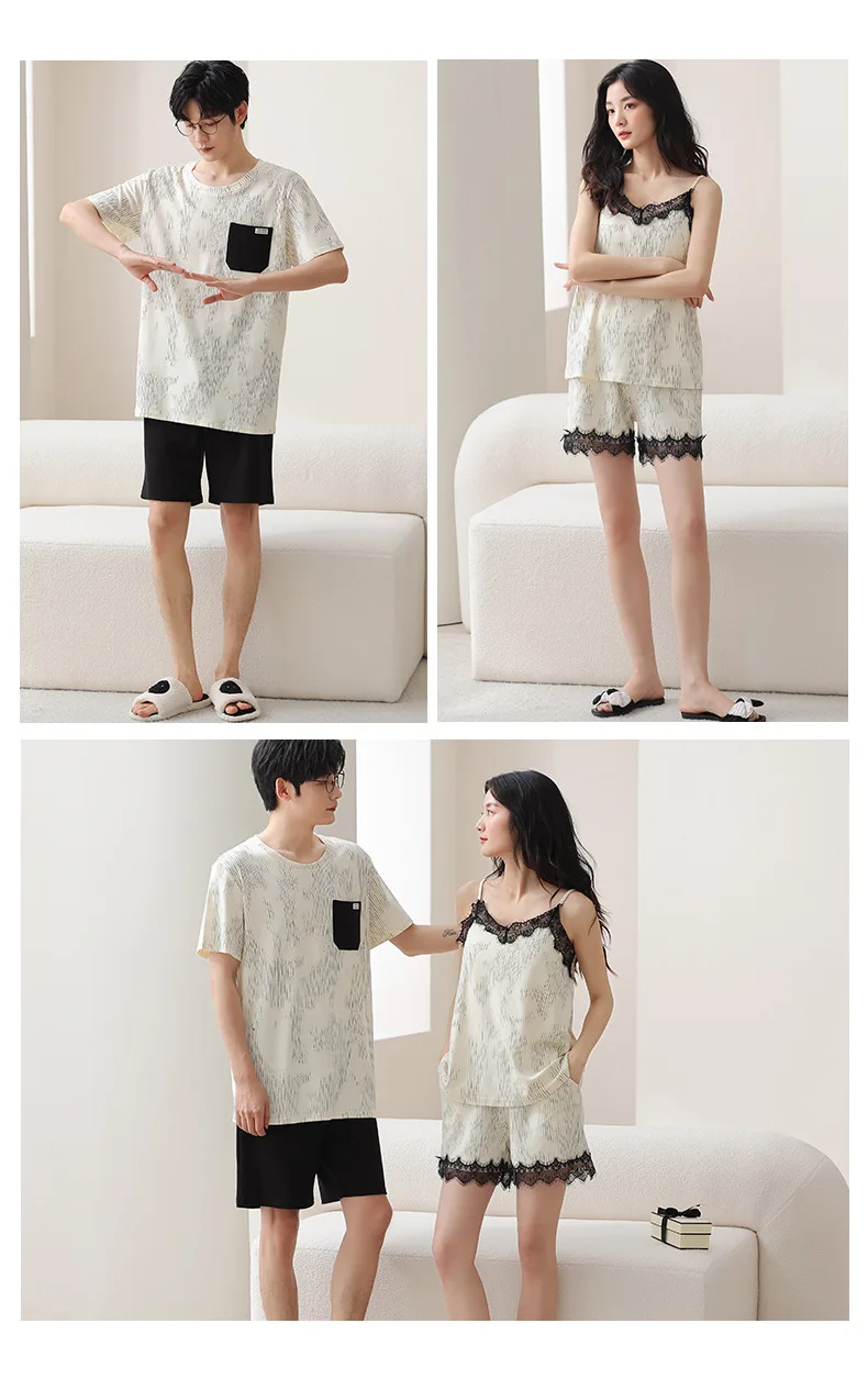 Summer Pyjamas Men Knited Cotton Pajamas Set Korean Sweet Pijamas Ladies Sexy Sleepwear Home Clothing For Youth Boy Girl