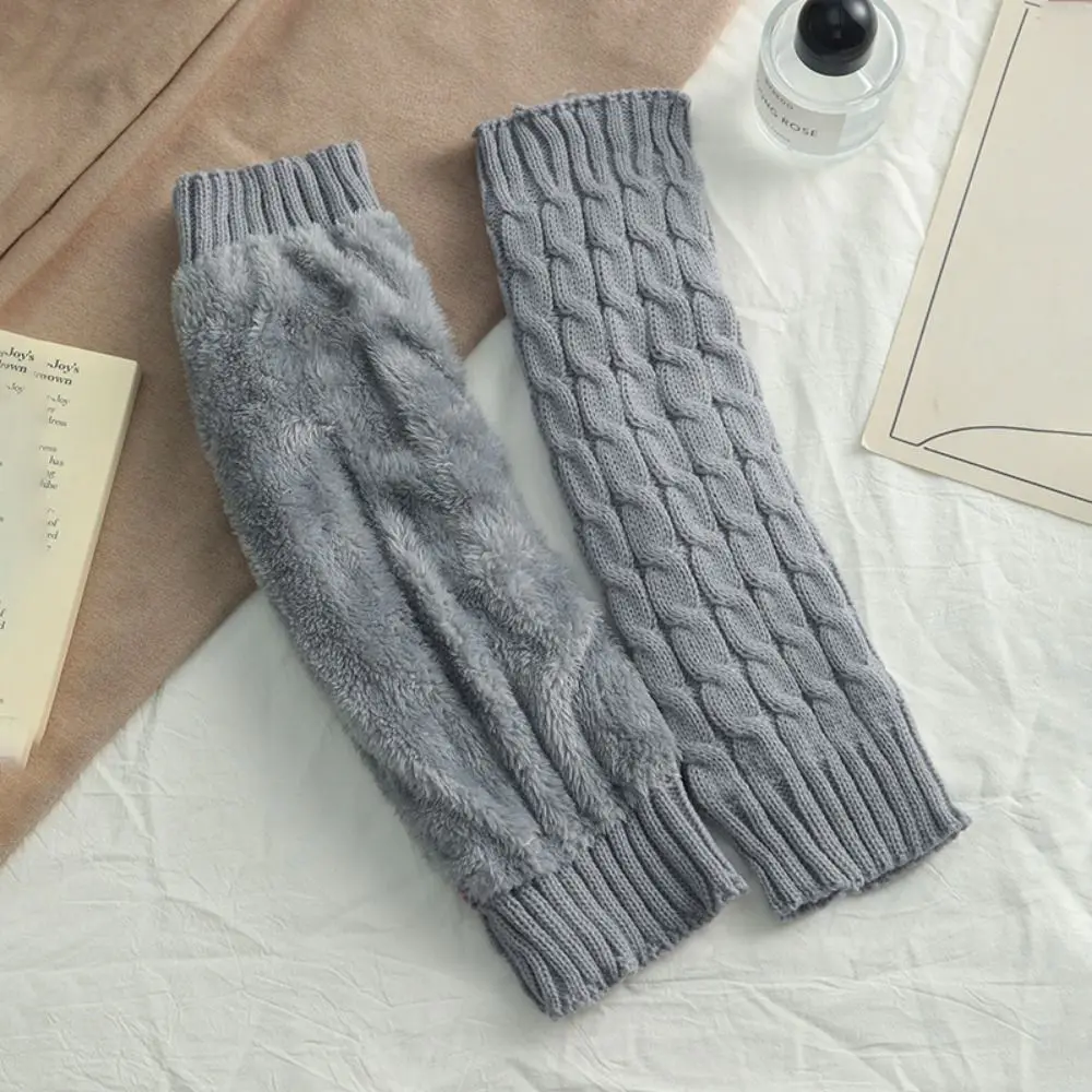 Twist Pattern Knitting Leg Warmers Double-Layered Fleece-Lined Women Leg Warmers Solid Color Thicken Warm Foot Covers