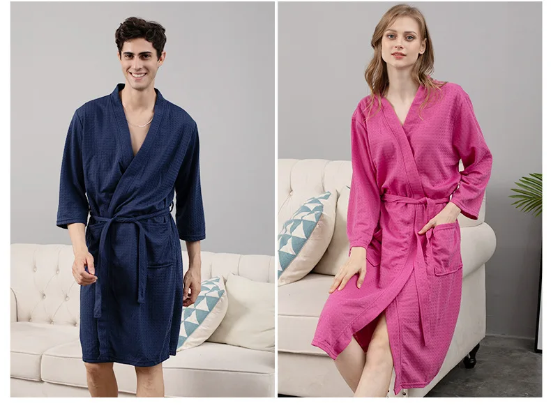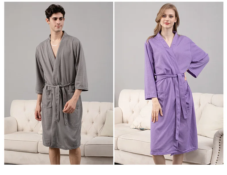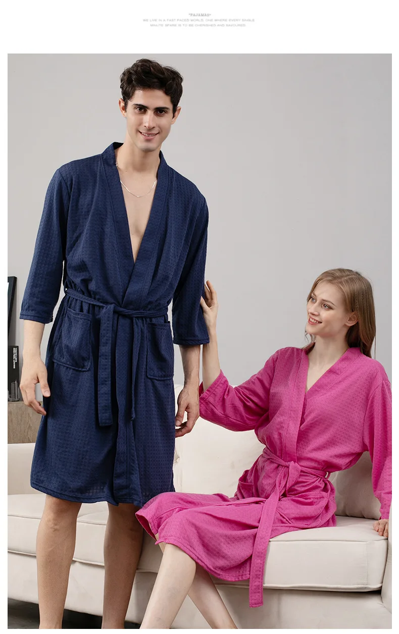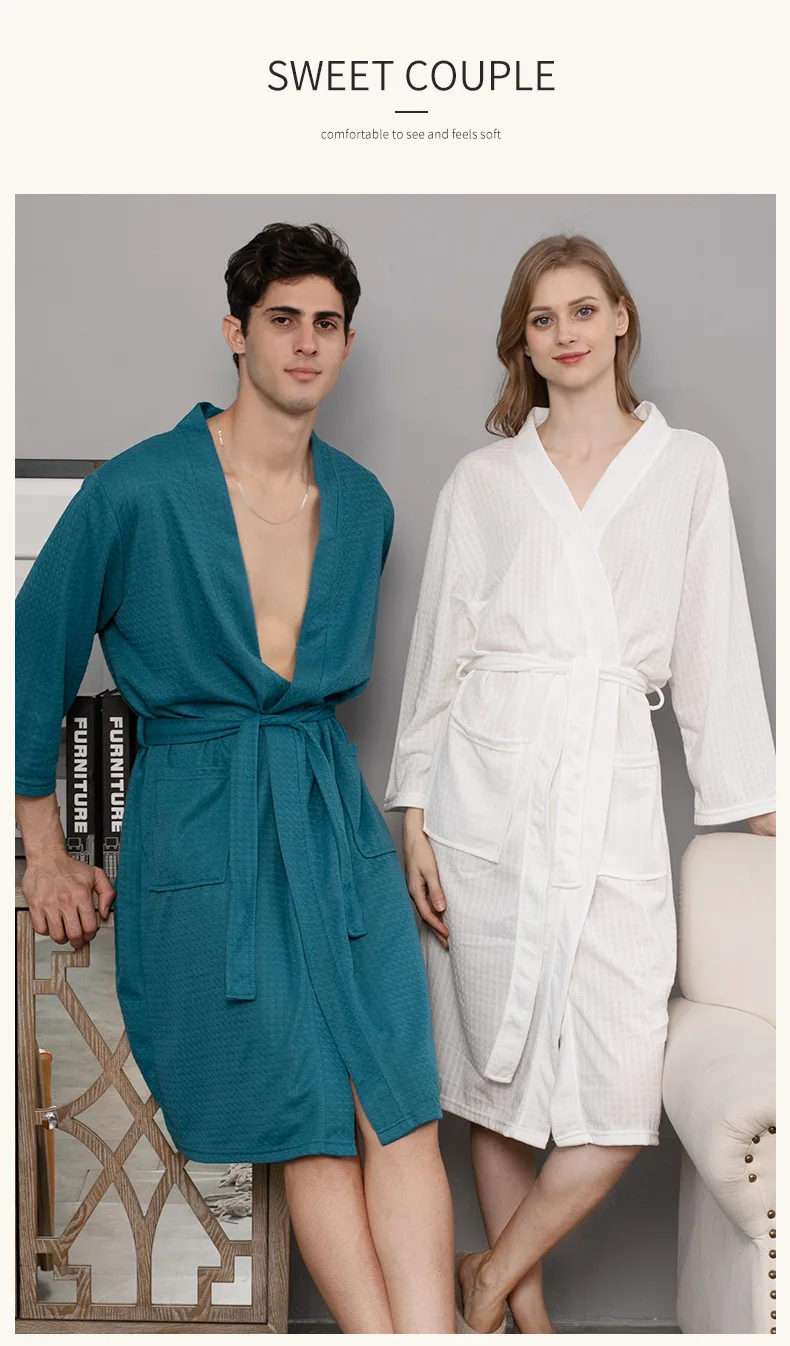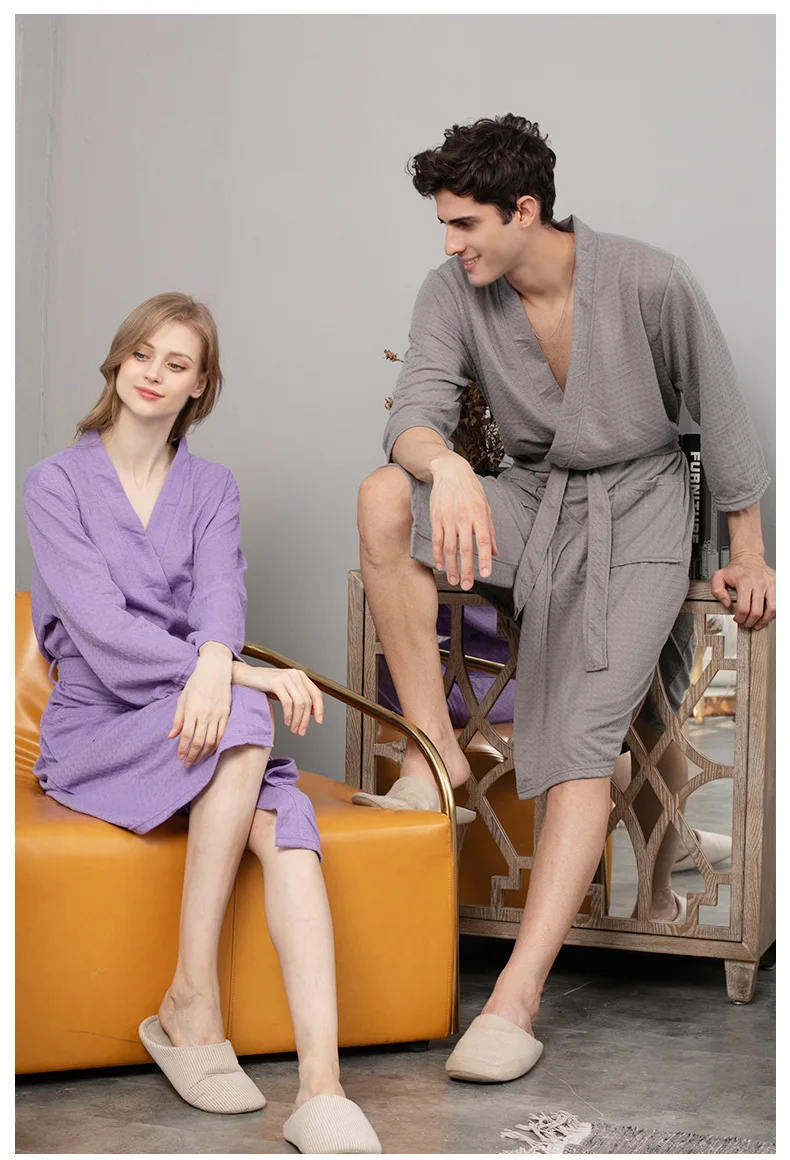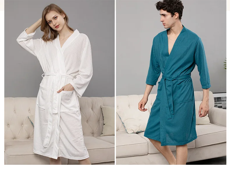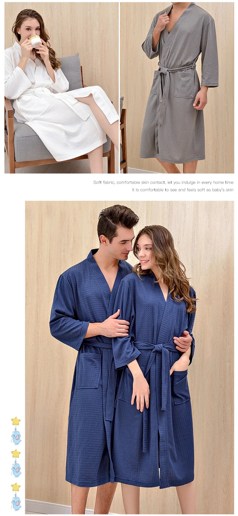 Women Men Pajamas Bathrobe Couples Waffle Bathrobe Cotton Men's Bathrobe