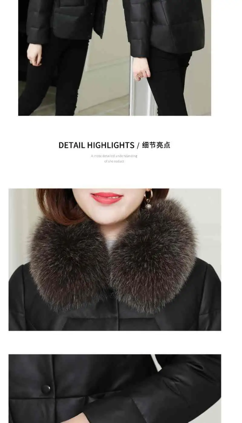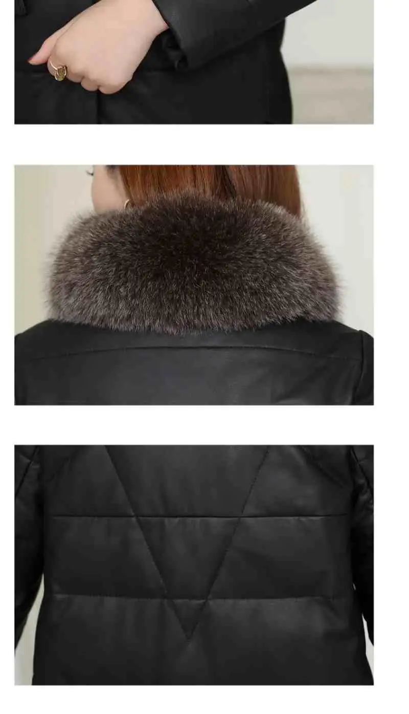 Women's PU Leather Jacket Winter Parkas Fashion Big Fur Collar Down Cotton Coat Female Leather Windbreaker Outerwear Y765